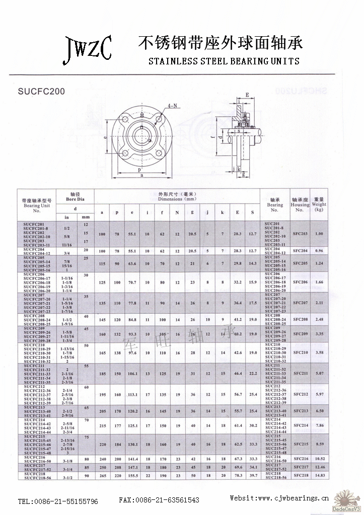 不銹鋼圓形軸承座 SUCFC系列