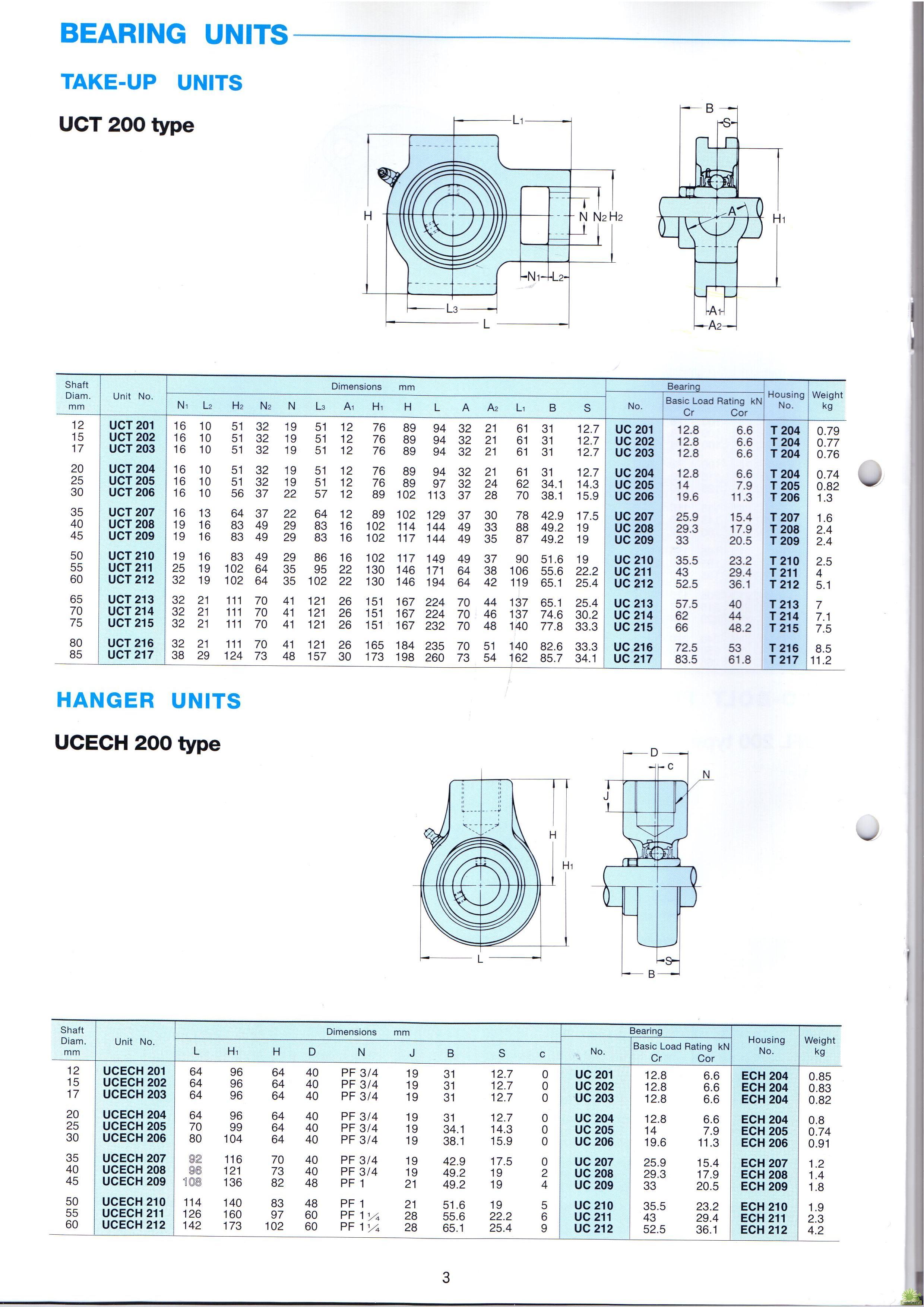 ASAHI軸承 UCT UCECH系列尺寸表